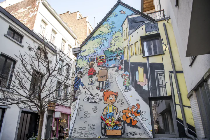 A mural with Roba’s characters Boule et Bill in Le Marolles. Credit: © visit.brussels/Eric Danhier.