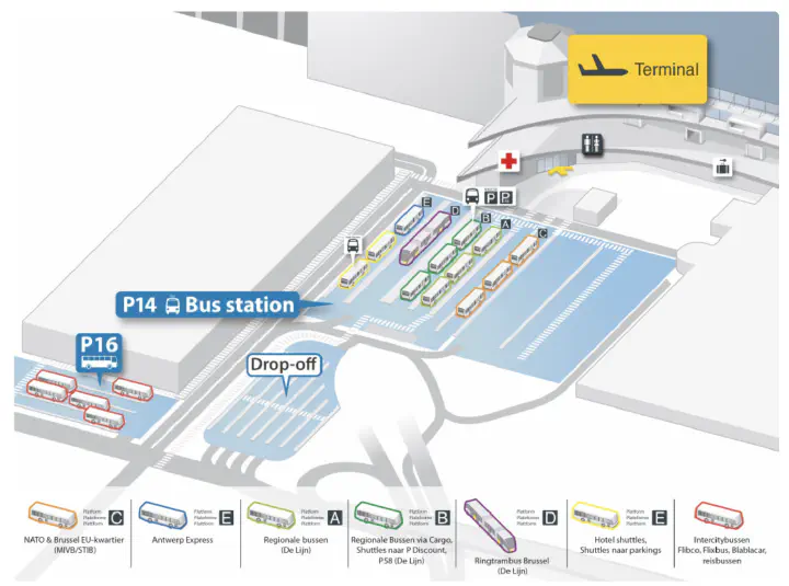 The bus stop at Brussels Airport is just outside the Arrivals Hall. Image: Brusselsairport.be.