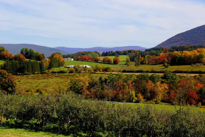 Vermont: October 9–13, but you may see beautiful colors in the southern part of the state through late October