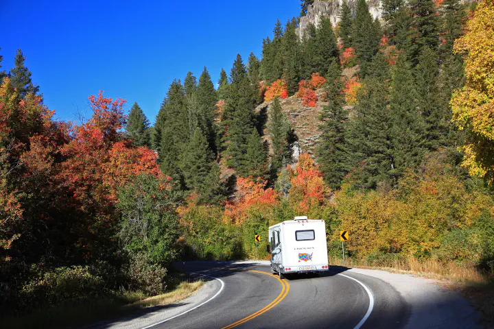 Colorful foliage along Logan Canyon Scenic Byway, Utah. Credit: Steve Greenwood/Visit Utah.