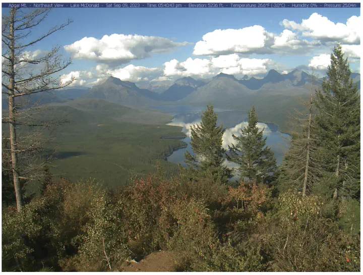 A screenshot of the amazing webcam view from the summit of Apgar Mountain, Glacier National Park. Source: NPS.gov.