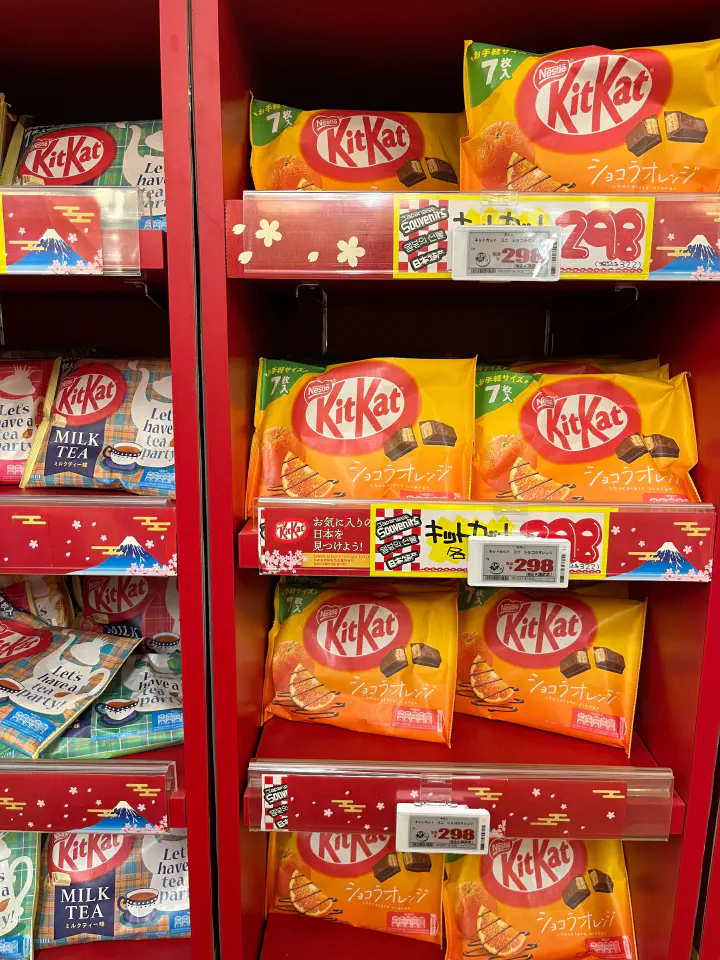 Although Don Quijote is famous for offering low prices, this is not always the case. For example, KitKat packs can sometimes be found cheaper in supermarkets like Seiyu and even in pharmacies or beauty stores (in Japan you never know what you can find in a store!). We also found KitKat for sale at a convenience store near the entrance of Haneda Airport. However, the advantage of Don Quijote is the variety of KitKat it has, including flavors inspired by Japanese specialties such as “royal milk tea”, matcha green tea, and the traditional sake.